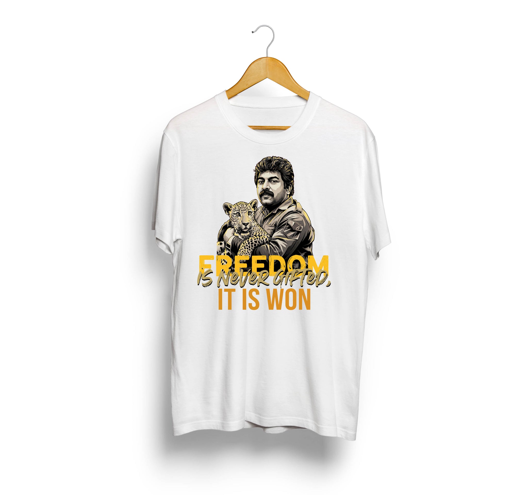 Wash Care: We understand the importance of easy maintenance. To keep your t-shirt looking its best, simply machine wash it. Use cold water and a mild detergent to preserve the fabric's quality. To ensure the longevity of the print, avoid ironing directly on it, and refrain from scrubbing it. Let it dry naturally in the shade to prevent color fading.