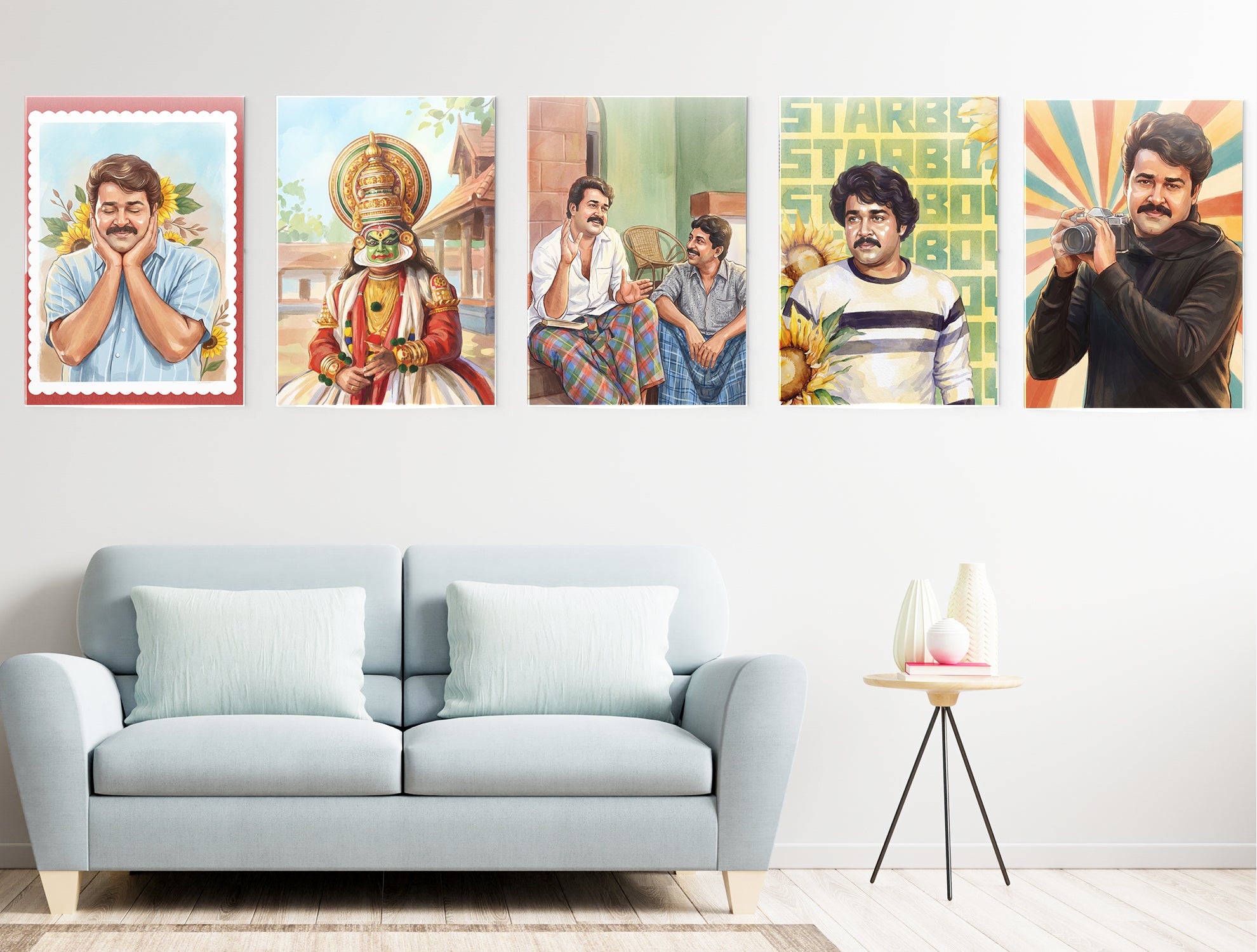 Mohanlal Aesthetic Metal Posters Set of 5 | Timeless Icon of Indian Cinema Collection